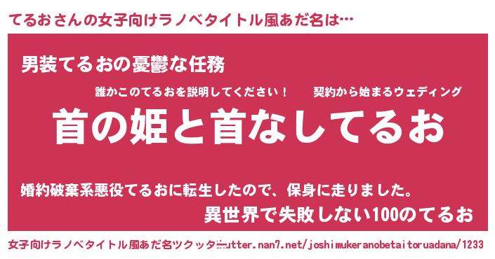 | 男性向けラノベタイトル風あだ名 | 『はたらくてるおさま!』 |