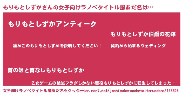 | 男性向けラノベタイトル風あだ名 | 『モリモトシズカアートオンライン』 |