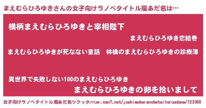 | 意味不明あだ名 | 『住所不定無職まえむらひろゆき(53歳)』 |