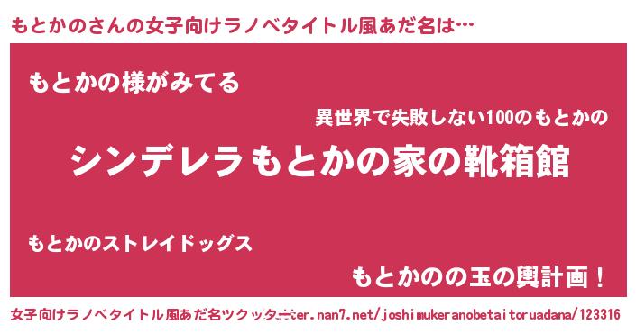 | 胡散臭い通販商品みたいなあだ名 | 『伝統あるサプリメント…その名も「もとかの」』 |