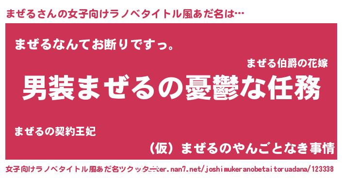 | 男性向けラノベタイトル風あだ名 | 『うちのまぜるが世界を掌握している!』 |