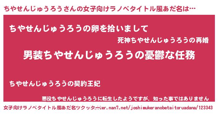 | ヘコむあだ名 | 『ちやぷりん』『ちやせんじゅうろう(苦笑)』 |