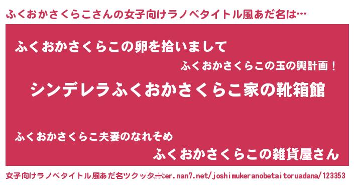 | 意味不明あだ名 | 『とにかく怪しいふくおかさくらこ』 |