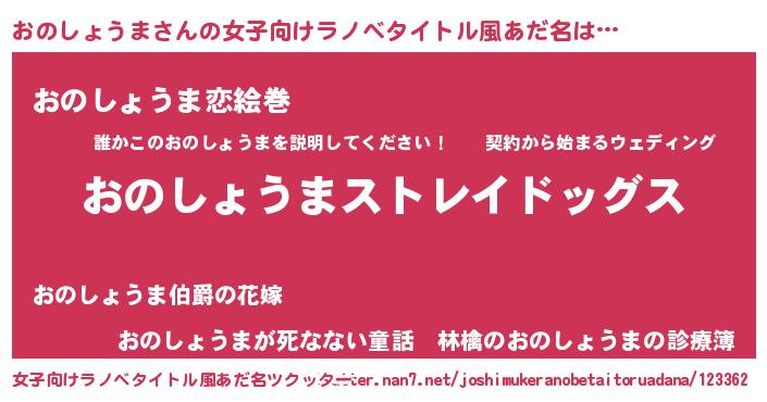 | 欧米人風あだ名 | 『ケンブリッジおのしょうま』 |