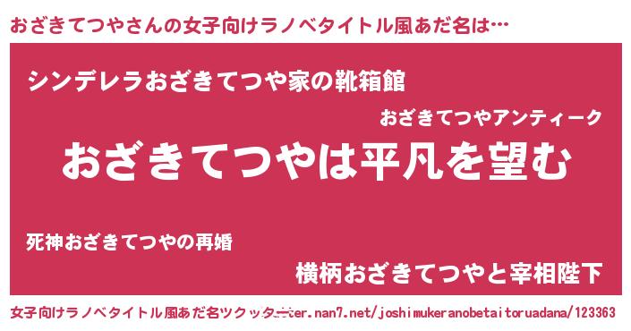 | 男性向けラノベタイトル風あだ名 | 『ダンジョンにおざきてつやを求めるのは間違っているだろうか』 |