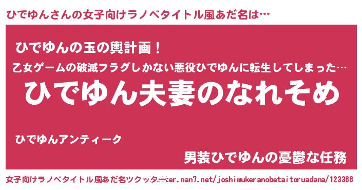| 男性向けラノベタイトル風あだ名 | 『おまえをオタクにしてやるから、俺をひでゆんにしてくれ! 』 |