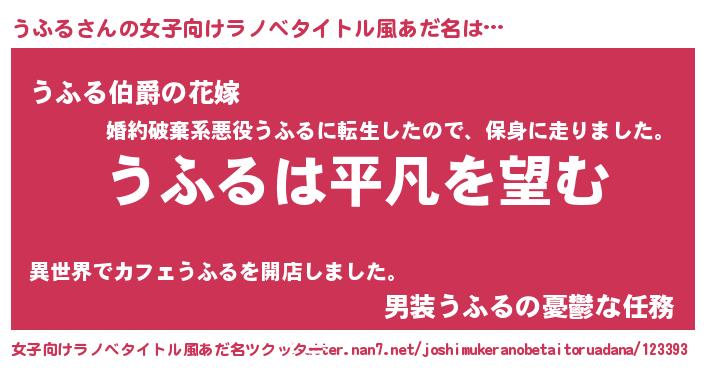 | 男性向けラノベタイトル風あだ名 | 『ダンジョンにうふるを求めるのは間違っているだろうか』 |