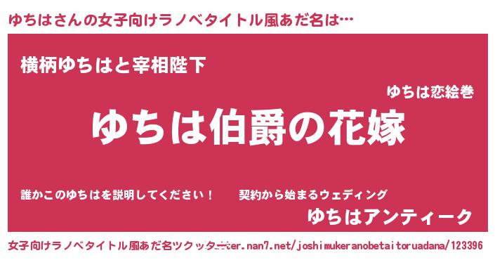 | 男性向けラノベタイトル風あだ名 | 『うちの娘の為ならば、俺はもしかしたらゆちはも倒せるかもしれない。』 |
