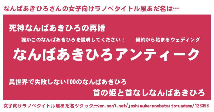 | 意味不明あだ名 | 『自称なんばあきひろ』 |