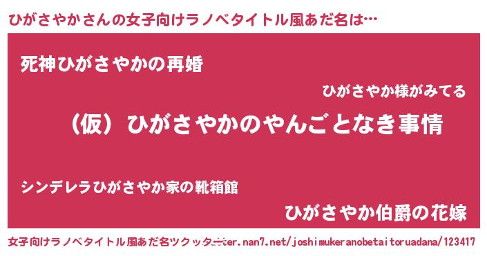 | 男性向けラノベタイトル風あだ名 | 『ひがさやかの憂鬱』『緋弾のヒガサヤカ』 |