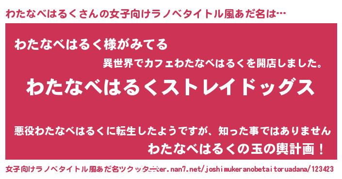 | 男性向けラノベタイトル風あだ名 | 『Re:わたなべはるくから始める異世界生活』 |
