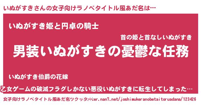 | 男性向けラノベタイトル風あだ名 | 『うちのいぬがすきが世界を掌握している!』 |