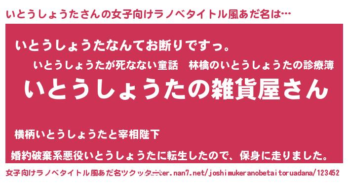 | 男性向けラノベタイトル風あだ名 | 『やはりいとうしょうたの青春ラブコメはまちがっている 』 |