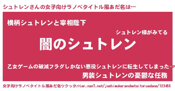 | 男性向けラノベタイトル風あだ名 | 『Re:シュトレンから始める異世界生活』 |