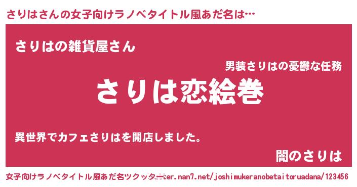 | 男性向けラノベタイトル風あだ名 | 『ノーゲーム・ノーサリハ』 |