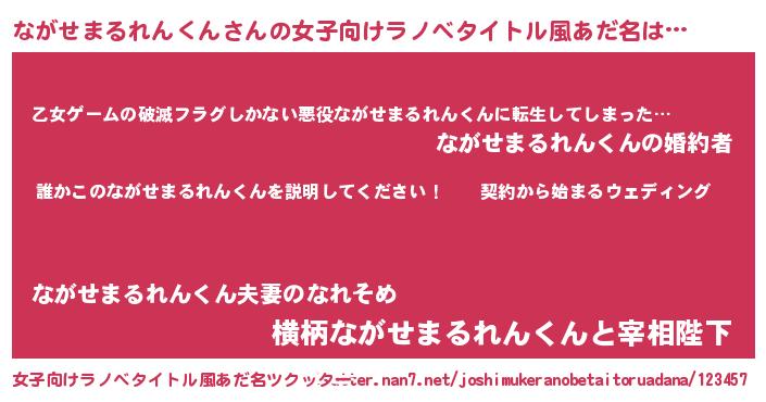 | 男性向けラノベタイトル風あだ名 | 『ナガセマルレンクンアートオンライン』 |