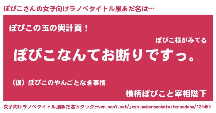 | 肩書あだ名 | 『ぽぴこ閣下』『ぽぴこ中将』 |