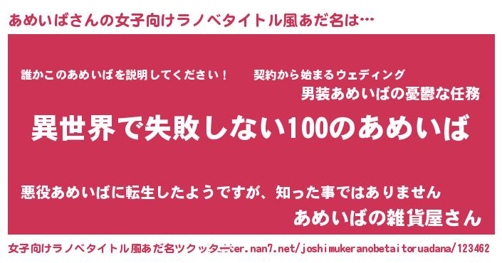 | ヘコむあだ名 | 『あめいば(笑)』『あめにー』 |