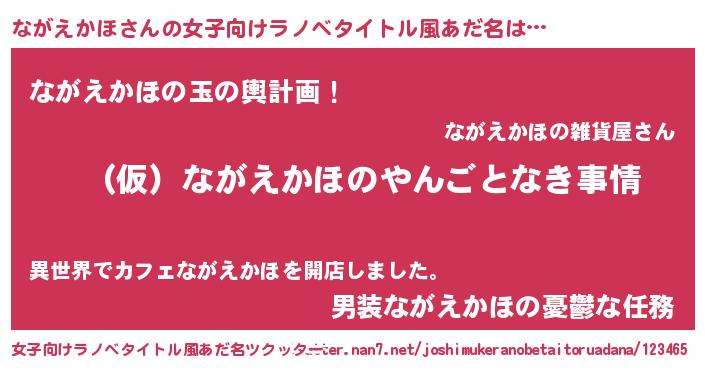 | 伝説のあだ名 | 『伝説のスナイパーながえかほ』 |