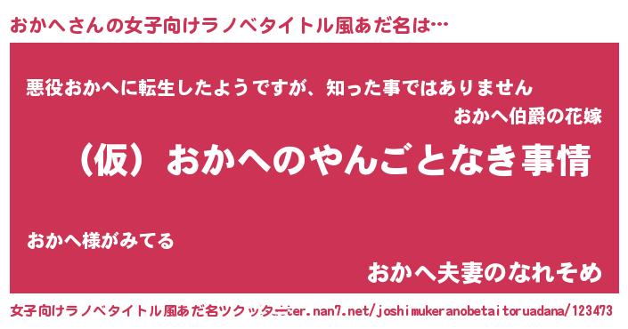 | 男性向けラノベタイトル風あだ名 | 『おかへの憂鬱』 |