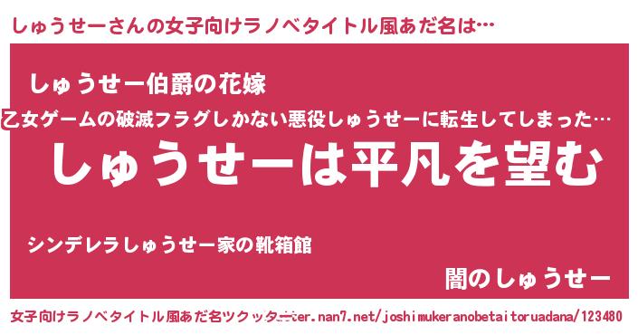 | ヒーロー風カッコイイあだ名 | 『暗黒騎士シュ』『最強戦士シュウセー』 |