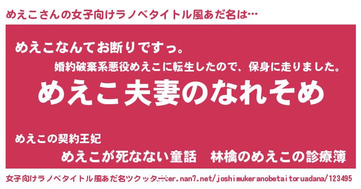 | 意味不明あだ名 | 『眠気覚ましガムめえこ味』『自称めえこ』 |