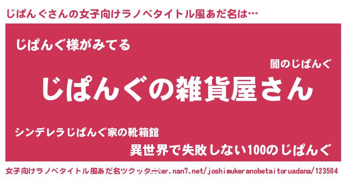 | 男性向けラノベタイトル風あだ名 | 『やはりじぱんぐの青春ラブコメはまちがっている 』 |