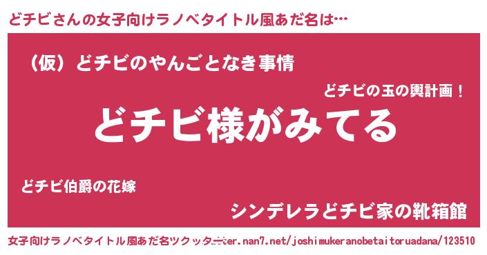 | 男性向けラノベタイトル風あだ名 | 『どチビの嫁は女の子じゃないと思った?』 |