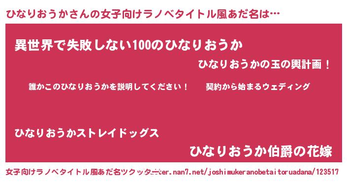 | 胡散臭い通販商品みたいなあだ名 | 『億万長者になれる水晶球…その名も「ひなりおうか」』 |