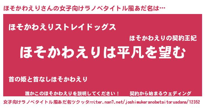 | ポケモン風あだ名 | 『ヒホソカワエリ』『ホソセウス』 |