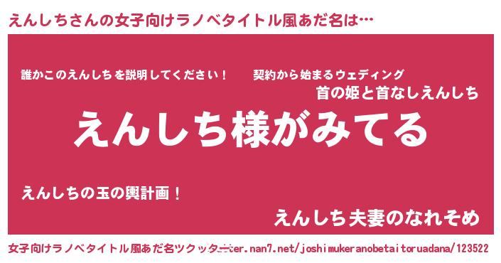 | 男性向けラノベタイトル風あだ名 | 『えんしちの嫁は女の子じゃないと思った?』 |