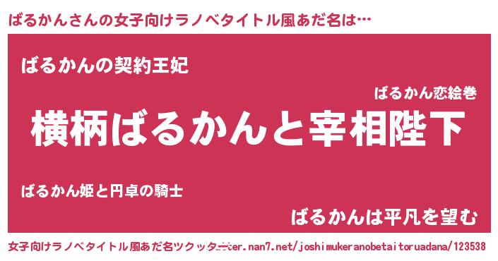 | ヘコむあだ名 | 『ばるかん(小並感)』『ばるを』 |