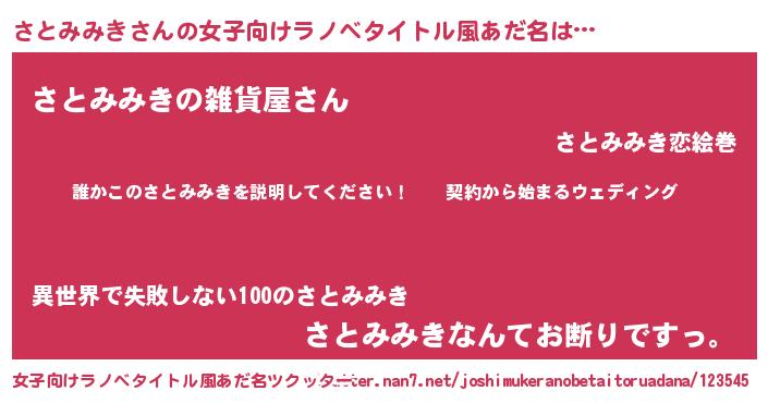 | 肩書あだ名 | 『さとみみき御曹司』『さとみみき大統領』 |