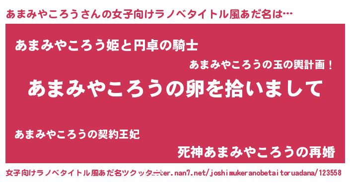 | 胡散臭い通販商品みたいなあだ名 | 『伝統あるサプリメント…その名も「あまみやころう」』 |