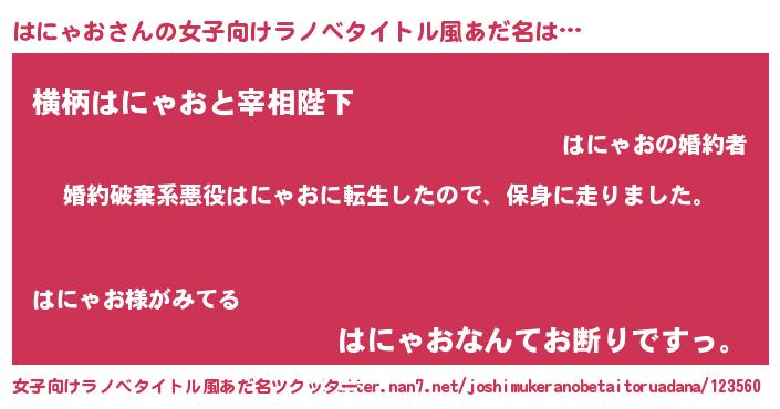 | 男性向けラノベタイトル風あだ名 | 『転生したらはにゃおだった件』 |