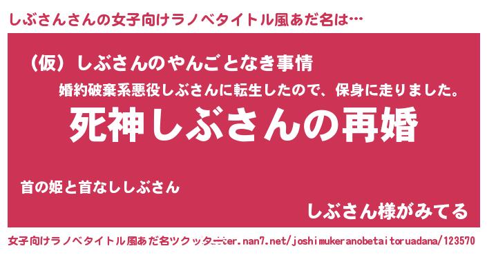 | 男性向けラノベタイトル風あだ名 | 『ノーゲーム・ノーシブサン』 |