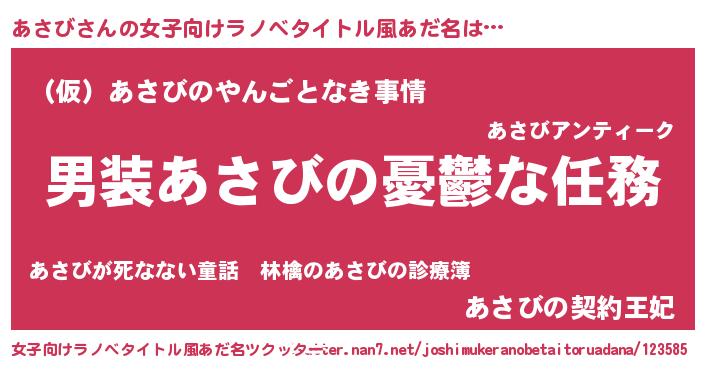 | 胡散臭い通販商品みたいなあだ名 | 『億万長者になれる霊験あらたかなお札…その名も「あさび」』 |
