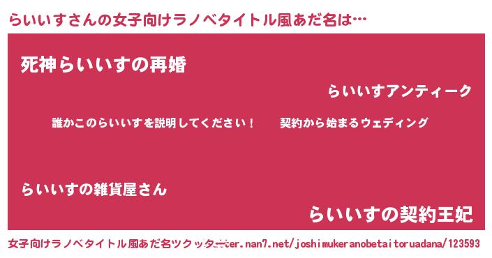 | 男性向けラノベタイトル風あだ名 | 『ライイスアートオンライン』 |