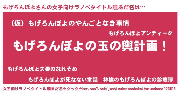 | 胡散臭い通販商品みたいなあだ名 | 『億万長者になれるブレスレット…その名も「もげろんぼよ」』 |