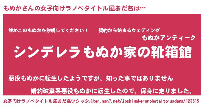 | 男性向けラノベタイトル風あだ名 | 『緋弾のモヌカ』『モヌカスレイヤー』 |