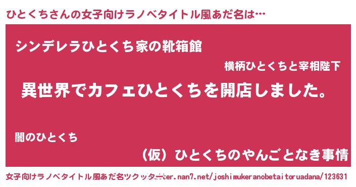 | ヘコむあだ名 | 『ひとくち(遠い目)』『ひともー』 |