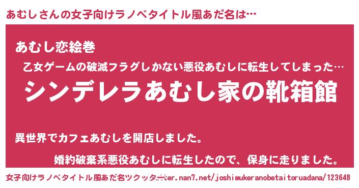 | 男性向けラノベタイトル風あだ名 | 『冴えないあむしの育てかた』 |