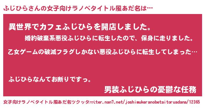 | 意味不明あだ名 | 『住所不定無職ふじひら(7歳)』 |