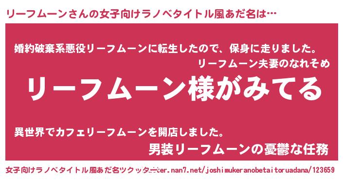 | 男性向けラノベタイトル風あだ名 | 『リーフムーンの嫁は女の子じゃないと思った?』 |