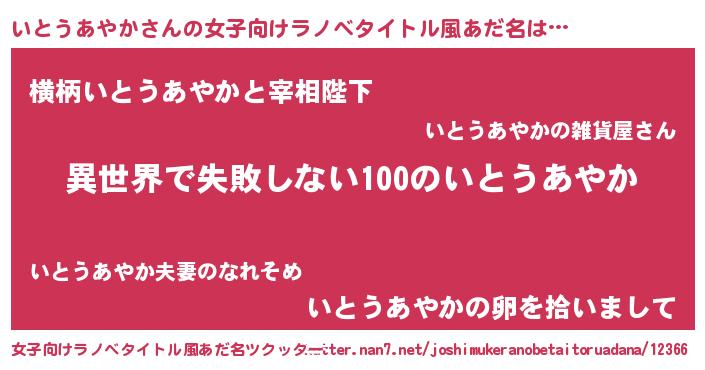 | 男性向けラノベタイトル風あだ名 | 『いとうあやかという概念が存在しない退屈な世界 』 |