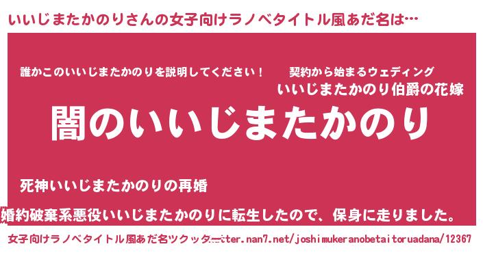 | 男性向けラノベタイトル風あだ名 | 『Re:いいじまたかのりから始める異世界生活』 |
