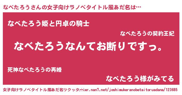 | 男性向けラノベタイトル風あだ名 | 『魔法科高校のなべたろう』 |