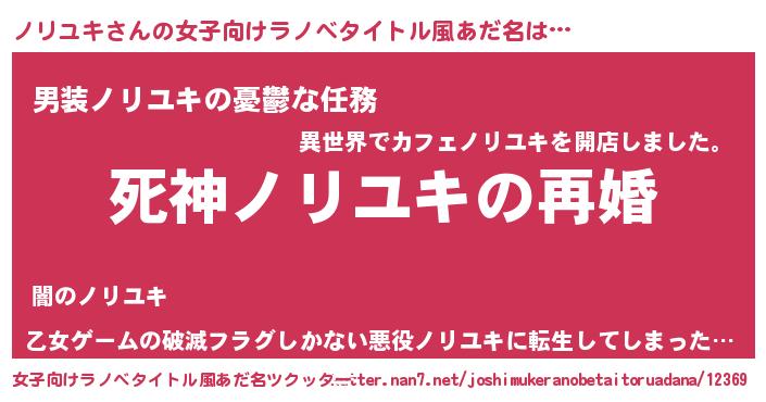 | 男性向けラノベタイトル風あだ名 | 『ノーゲーム・ノーノリユキ』 |