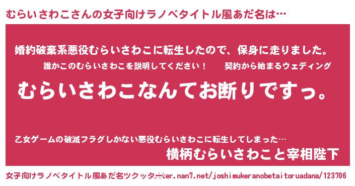 | 男性向けラノベタイトル風あだ名 | 『魔法科高校のむらいさわこ』 |