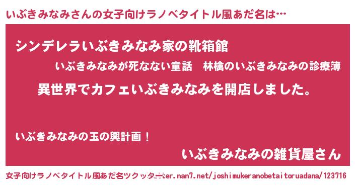 | ヒーロー風カッコイイあだ名 | 『ネオイブキミナミ』『仮面イブダー』 |